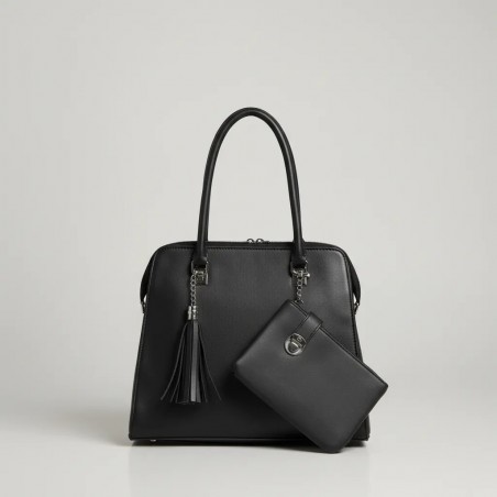 حقيبة يد جلدية سوداء أنيقة مع سحر الفرشاة