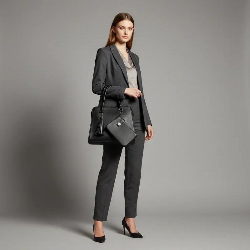 ارفع من أسلوبك مع هذه الحقيبة الجلدية السوداء الفاخرة التي تجمع بين الوظائف والأناقة. تتميز بتصميم أنيق، هذه الحقيبة مثالية لأي مناسبة، سواء كانت يومًا في المكتب أو سهرة في الخارج. تأتي الحقيبة مع سحر فرشاة أنيق وحقيبة مطابقة لراحة إضافية، مما يضمن لك كل ما تحتاجه في متناول يدك. مصنوعة من مواد عالية الجودة، تعد هذه الحقيبة بالمتانة والجاذبية الخالدة.