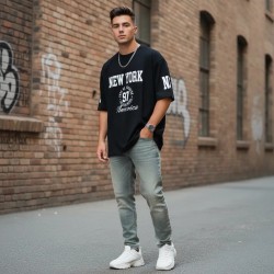 تي شيرت جرافيك مريح وأنيق يتميز بتصميم كلاسيكي من نيويورك.