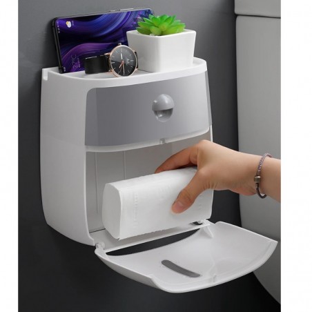 نظم مستلزمات حمامك بسهولة مع هذا الحامل الأنيق المثبت على الحائط، والذي يحتوي على رف تخزين للأشياء الصغيرة وموزع مناديل سهل الوصول.