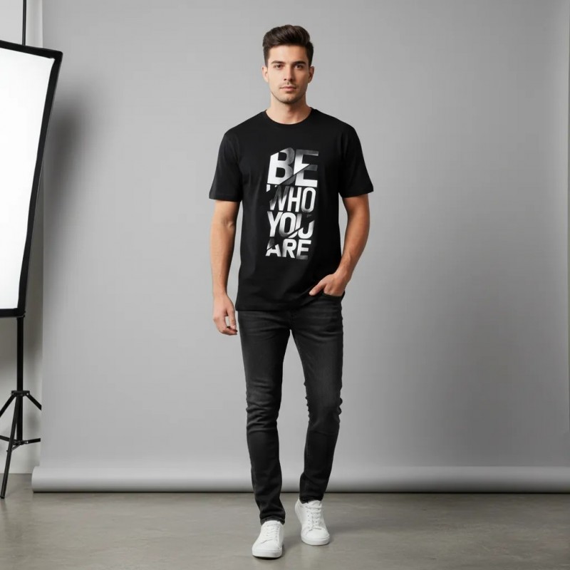 تي شيرت جرافيك أسود للرجال