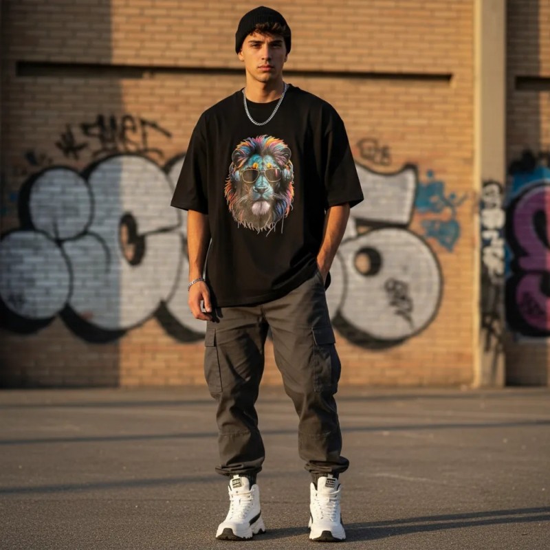 تي شيرت جرافيك أسد حضري