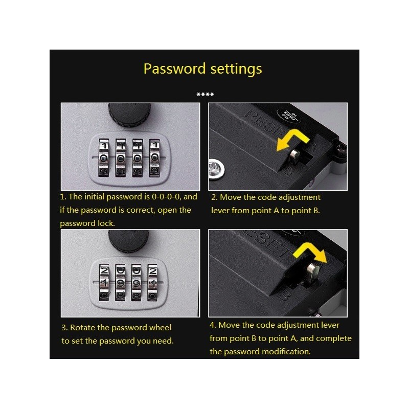 The Password Key Box offers a secure and convenient way to store and access your keys. Made from ABS plastic and alloy, this key box is built to last and withstand harsh environments. Ideal for use at home, on construction sites, or in schools, it features a robust password mechanism to ensure your keys are safe and accessible only to authorized users.