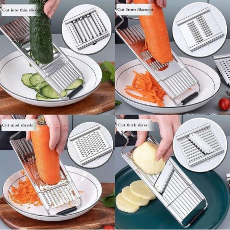 The Multifunctional Vegetable Slicer is an essential addition to any kitchen. This versatile tool allows you to slice, grate, and shred a variety of vegetables with ease. Perfect for preparing salads, garnishes, and more, it features multiple blade options for customized cuts. Made from durable stainless steel, it's designed for long-lasting use and is easy to clean. Enhance your cooking efficiency and creativity with this all-in-one slicer.