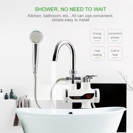 Experience the convenience of instant hot water with our modern electric faucet. This innovative device provides hot water on demand, perfect for kitchens and bathrooms alike. The digital display allows you to monitor the water temperature for optimal comfort and safety. With its sleek design and easy installation, this faucet combines functionality with style, making it a must-have addition to any contemporary home.