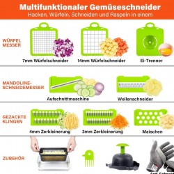 Transform your kitchen prep time with the Multifunctional Vegetable Chopper and Dicer. Designed with multiple interchangeable blades, this tool allows you to chop, dice, and slice a variety of vegetables in seconds. The robust design ensures durability, while the included safety glove ensures your hands are protected. Perfect for making salads, soups, and intricate meals with ease, this chopper is a must-have for every home cook.