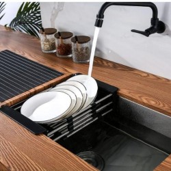 This adjustable over-sink dish rack is designed to maximize kitchen space and efficiency. Made with durable materials, it fits most sinks and provides a convenient solution for drying dishes or washing fruits and vegetables. Its expandable design ensures it can accommodate various sink sizes, making it a must-have for any kitchen.