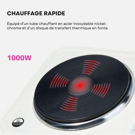 Profitez d'une cuisson rapide et efficace avec cette plaque chauffante de 1000W, conçue pour un chauffage rapide et uniforme.