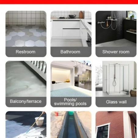 Ce revêtement étanche haute performance est conçu pour protéger une variété de surfaces, y compris les toilettes, les salles de bains, les douches, les balcons, les terrasses, les piscines et les murs en verre. Sa formule avancée garantit une protection durable contre la pénétration de l'eau, ce qui le rend idéal pour les applications résidentielles et commerciales. Facile à appliquer et à séchage rapide, ce revêtement offre une résistance exceptionnelle à l'humidité, assurant longévité et tranquillité d'esprit.