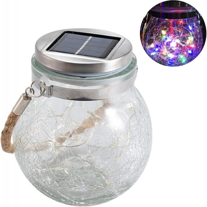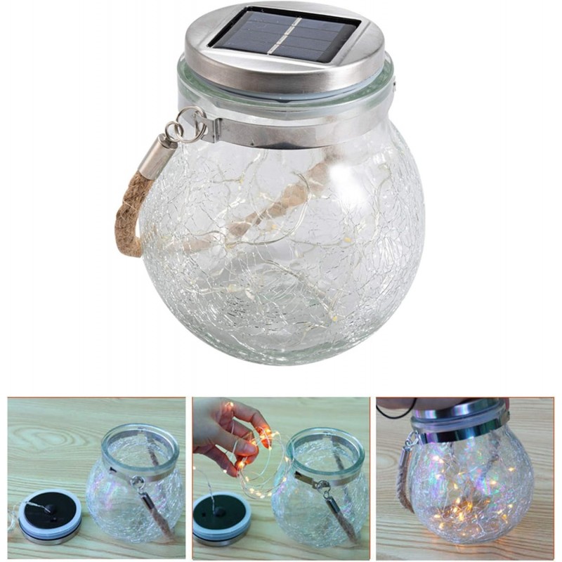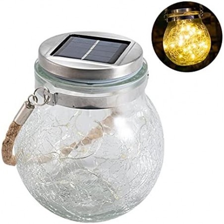 Lampe en pot en verre craquelé alimentée par énergie solaire