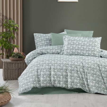 Les taies d'oreiller assorties complètent magnifiquement la housse de couette. Deux oreillers affichent le même charmant design floral, tandis que les deux autres sont d'une teinte verte unie qui s'harmonise parfaitement avec l'esthétique générale. La combinaison de motifs et de couleurs ajoute un intérêt visuel sans surcharger votre espace.